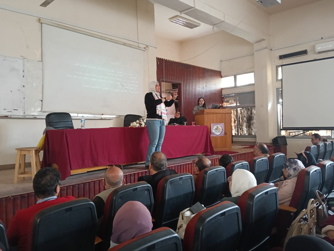 وقد حاضر فيها السيد الاستاذ الدكتور/ وسام عيادة رئيس فريق معيار المعايير الاكاديمية و البرامج التعليمية بحضور السادة أعضاء هيئة التدريس والهيئة المعاونة .
