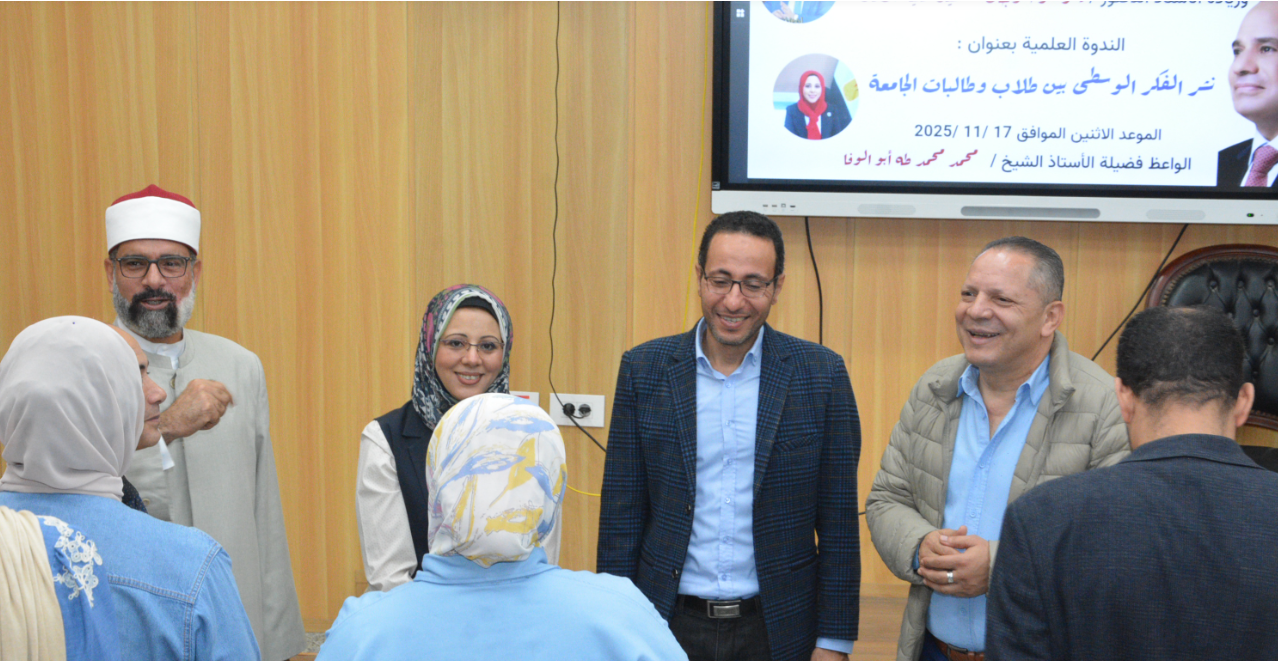 El Rector añadió que la Universidad de Damietta está dispuesta a impulsar iniciativas y actividades que contribuyan a la formación de la personalidad de los estudiantes sobre la base de la moderación, la apertura y el pensamiento crítico, señalando que los jóvenes son la piedra angular para construir una sociedad capaz de afrontar los desafíos intelectuales y culturales. Asimismo, expresó su agradecimiento al Ministerio de Dotaciones y a la Dirección de Dotaciones de Damietta por su continua cooperación, y afirmó que la universidad continuará ofreciendo estos seminarios con un propósito claro, alineados con la estrategia estatal de promover una concienciación progresista y fortalecer los valores de la identidad y la pertenencia nacionales.