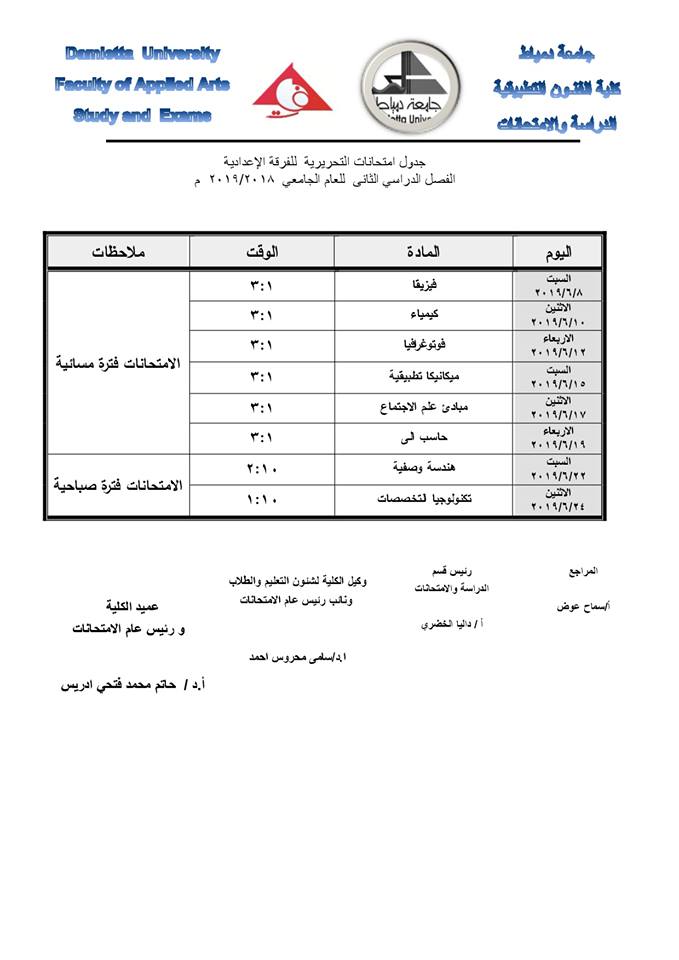 الفصل الدراسى الثانى للعام الجامعى 2018-2019