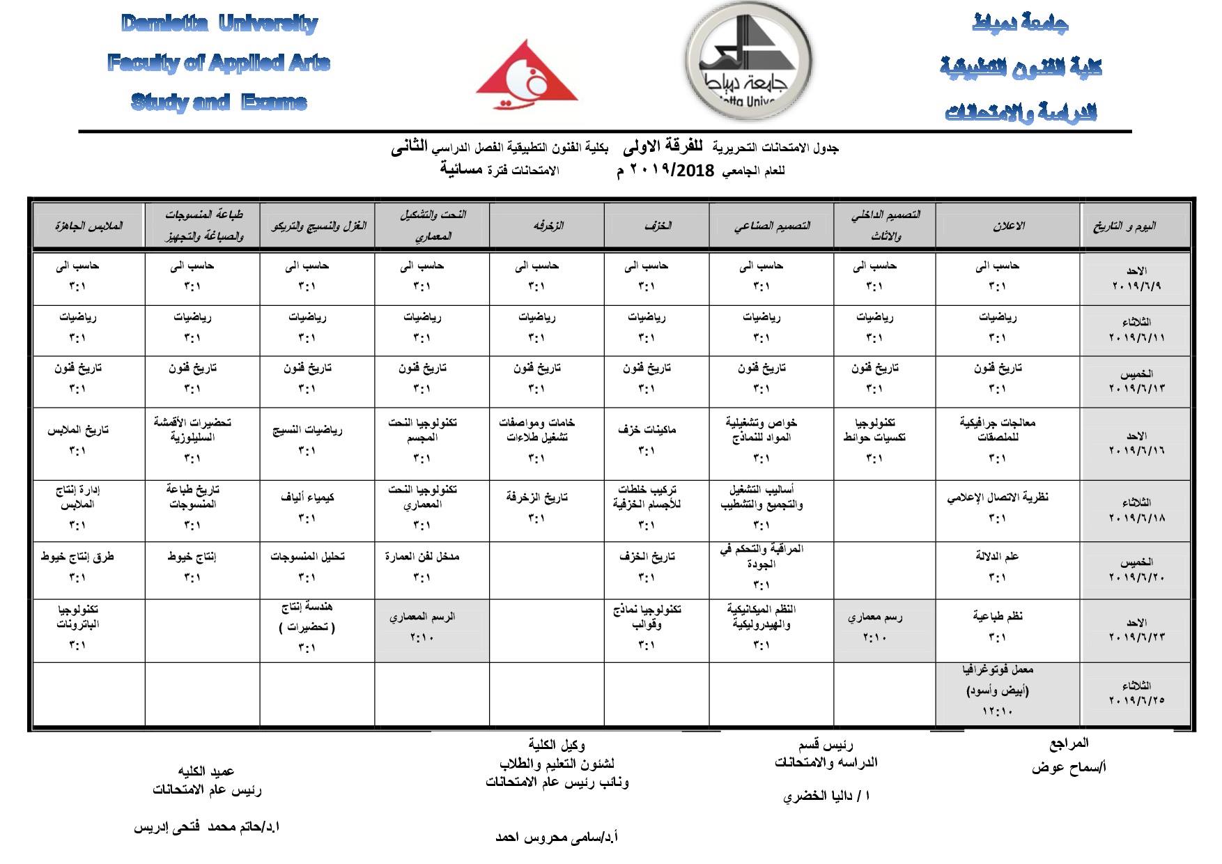 الفصل الدراسى الثانى للعام الجامعى 2018-2019