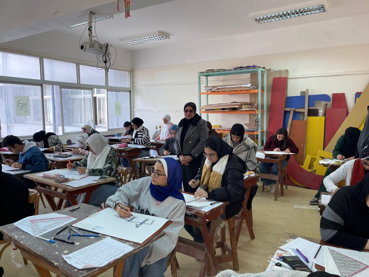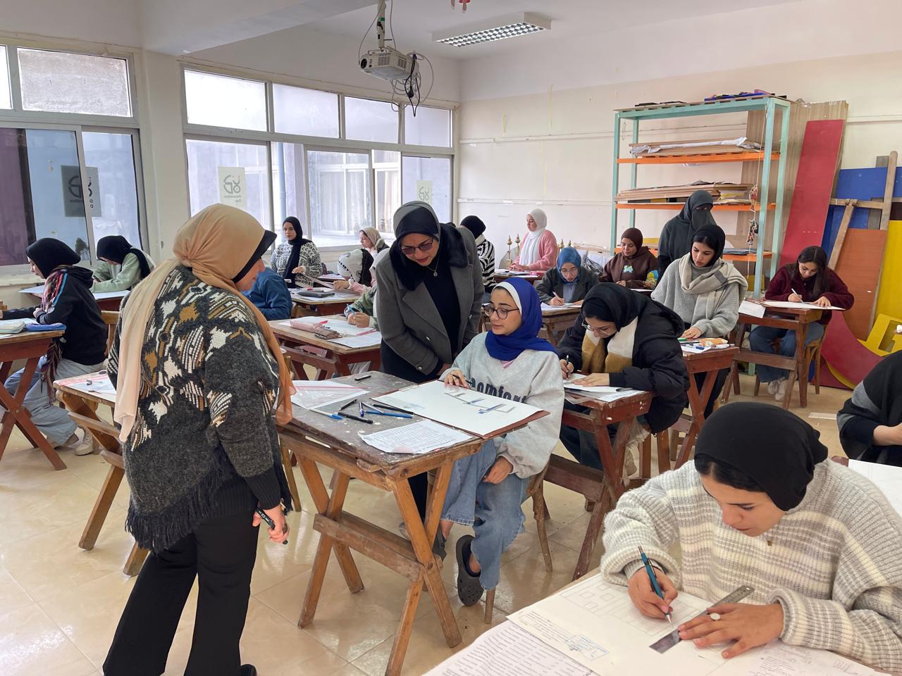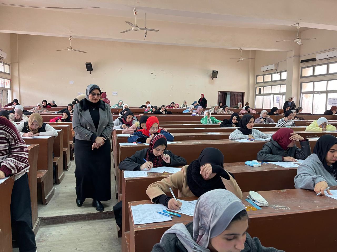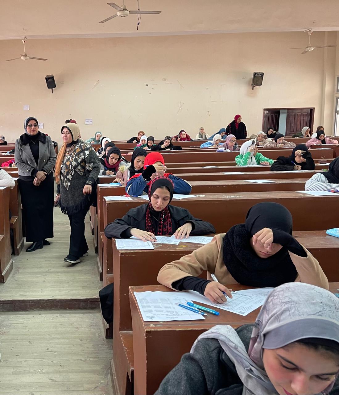 تحت رعاية معالي السيد الاستاذ الدكتور حمدان ربيع رئيس الجامعة والسيد الاستاذ الدكتور/ محمدعبده راغب عماشة نائب رئيس الجامعة لشؤون التعليم والطلاب تفقدت اليوم الاثنين الموافق 4/1/2026 السيدة الاستاذة الدكتورة /غادة محمد الصياد عميد الكلية والاستاذة الدكتورة / عبيرحامد سويدان وكيل الكلية لشؤون التعليم والطلاب الامتحانات النظرية بالكلية للفصل الدراسي الاول للعام الجامعي 2026/2025 وذلك للاطمئنان على سير الامتحانات بانتظام والتزام.