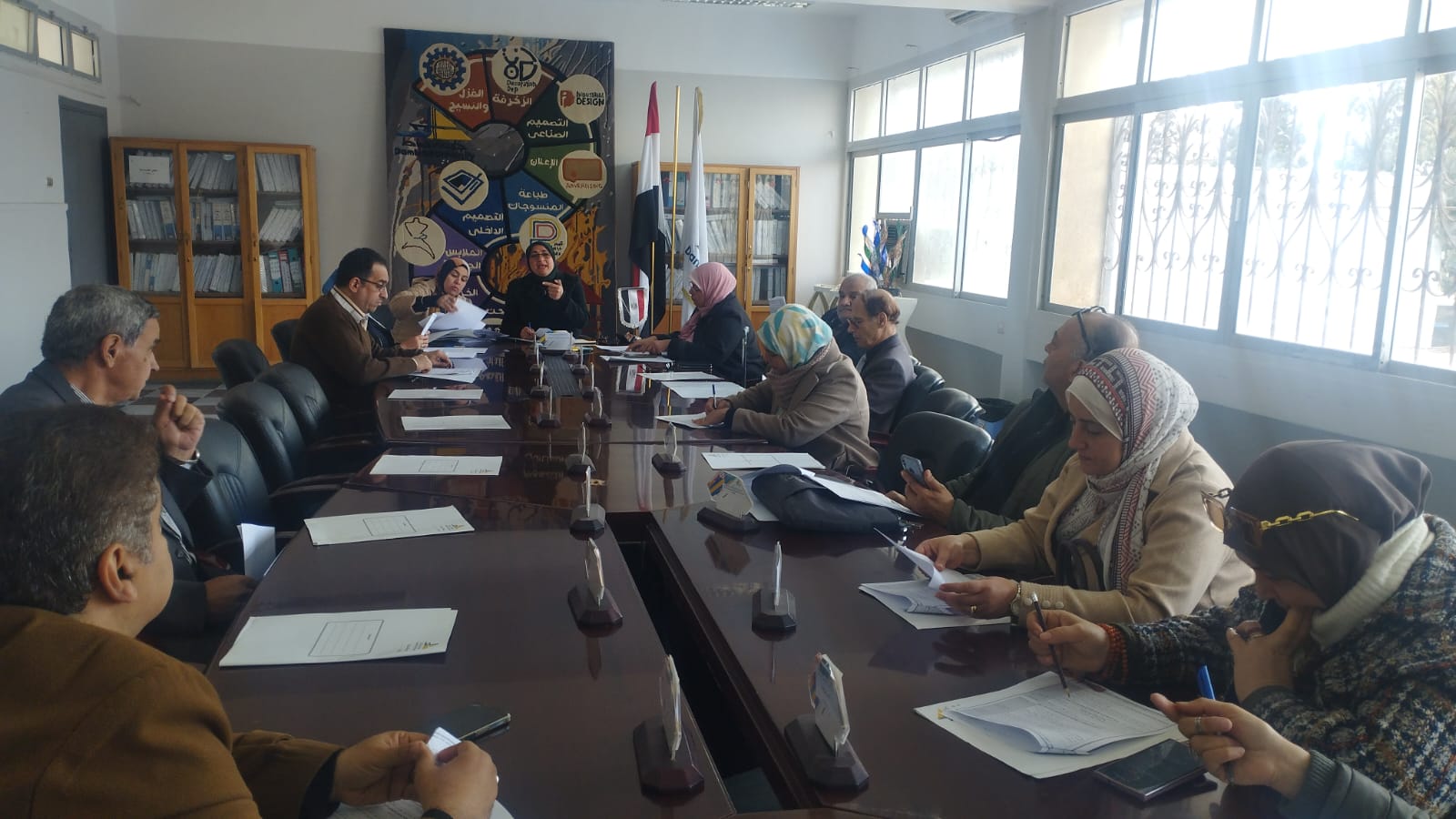 اجتمع مجلس كلية الفنون التطبيقية جامعة دمياط اليوم الاثنين الموافق   2/3/2026 في تمام الساعة الثانية عشر ظهرا برئاسة السيدة الاستاذة الدكتورة / غادة محمد الصياد عميد الكلية وحضور السادة الوكلاء ورؤساء الأقسام وأعضاء المجلس وفي استهلال المجلس رحبت الاستاذة الدكتورة غادة محمد الصياد بالسادة اعضاء المجلس والسادة الوكلاء وناقشت سيادتها عددا من الموضوعات المتعلقة بالعملية التعليمية والبحثية والخدمية ثم انتقلت سيادتها لمناقشة موضوعات جدول أعمال المجلس.