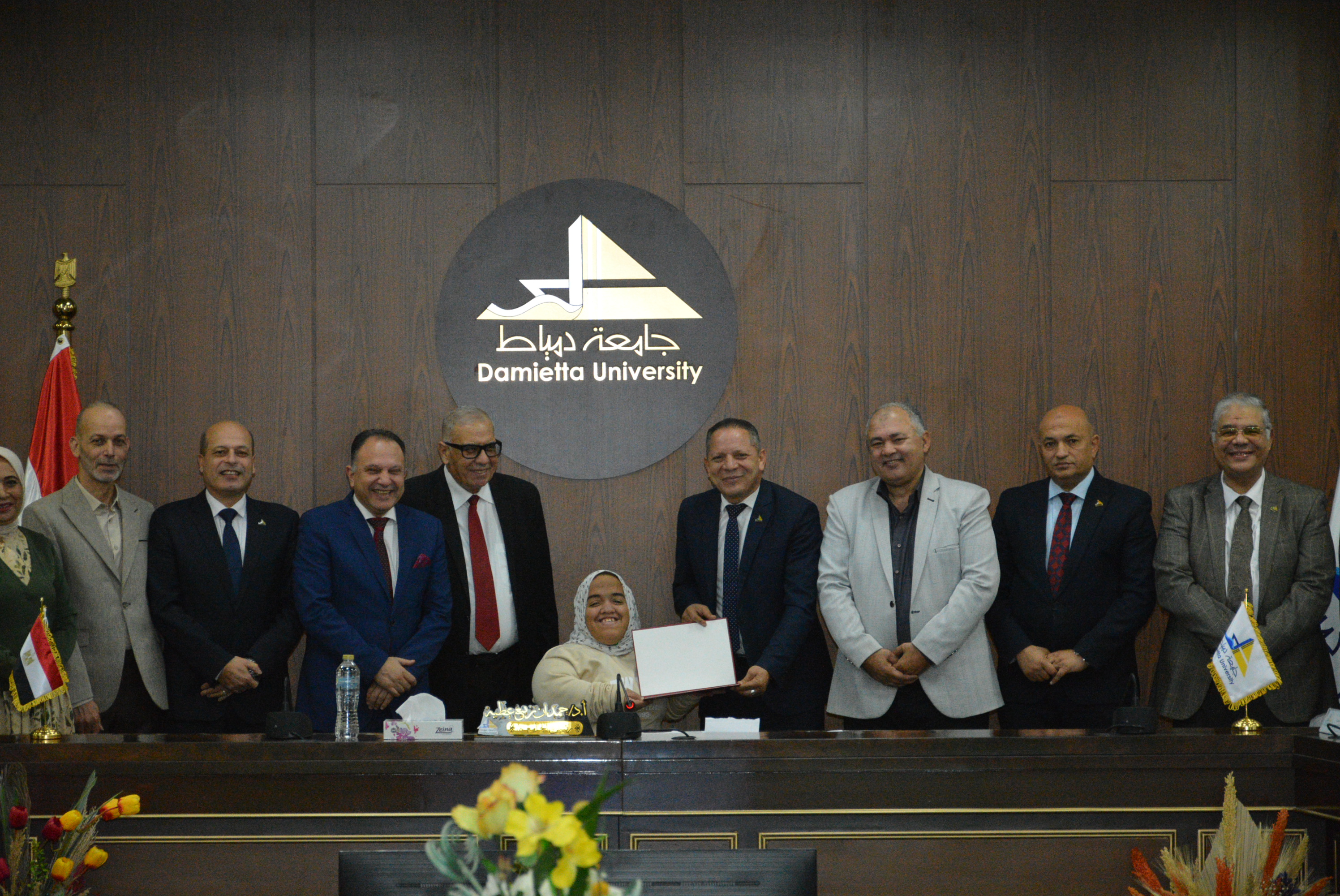 مجلس جامعة دمياط يكرّم البطلة هاجر العباسي لمسيرتها الحافلة بالإنجازات وفوزها بالميدالية الذهبية ضمن المهرجان الرياضي الثاني بجامعة بنها كرم مجلس جامعة دمياط، خلال اجتماعه اليوم